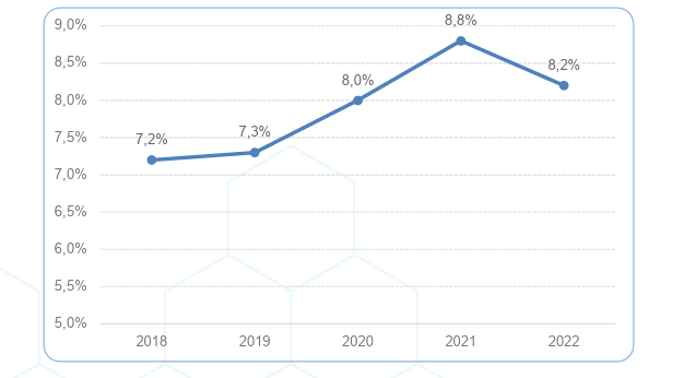 Gráfico 1. Prevalencia de diabetes en la población de Cantabria mayor de 18 años. Año 2022.