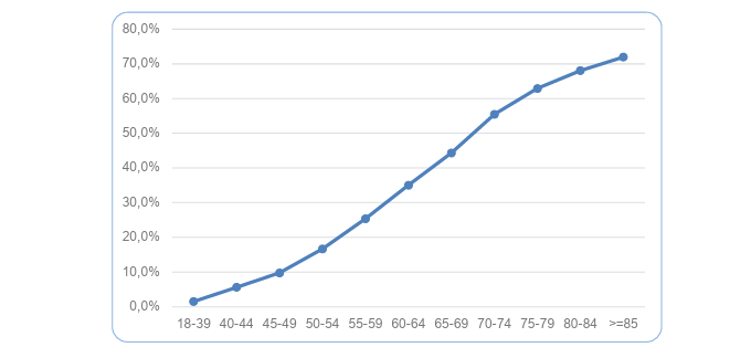 La hipertensión aumenta el riesgo de padecer enfermedades cardiacas, cerebrales y renales. En España, según el análisis de los datos de la Encuesta Nacional de Salud de 2017, hay un 20,1% de personas que sufren hipertensión entre la población de 15 y más años, siendo para Cantabria este dato ligeramente más alto alcanzando un 22,9% de población con esta enfermedad.