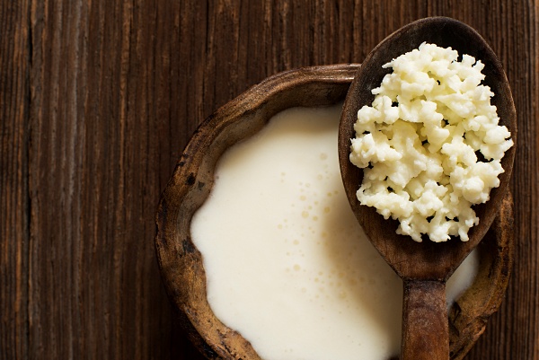 El kéfir se obtiene mediante una doble fermentación de la leche gracias a los gránulos de este lácteo, formados por levaduras vivas y bacterias beneficiosas que actúan conjuntamente durante este proceso. Son estas levaduras y bacterias presentes en los gránulos las que desempeñan un papel fundamental a la hora de nutrir y favorecer el equilibrio de la microbiota.