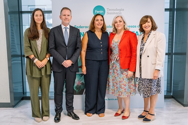 (de izq. a dcha): Carmen Ansótegui, directora de Comunicación de Fenin; Dionisio Martínez de Velasco, vicepresidente de Fenin; Manuela García Romero, consejera de Salud de Baleares; Lourdes López, vicepresidenta de Fenin, y Cristina Granados, directora gerente del Hospital Son Espases de Palma