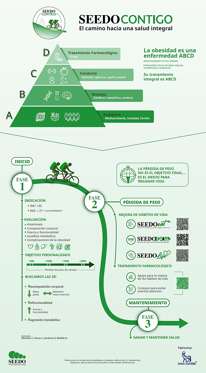 Y, por último, la Sociedad Española para el Estudio de la Obesidad (SEEDO) presenta una iniciativa pionera, un ambicioso plan que pretende servir de soporte para ayudar a los ciudadanos que viven con sobrepeso y exceso severo ponderal a conseguir una salud integral. Fundamentada en los conocimientos más recientes, las evidencias disponibles y todos los recursos disponibles actualmente para hacer frente a este problema de salud, SEEDO CONTIGO ofrece herramientas y consejos accesibles y prácticos para acompañar a estas personas en su misión de ganar salud.