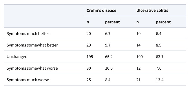 Tabla 1. Curso de los síntomas de la EII después de la menopausia en mujeres con EC/CU