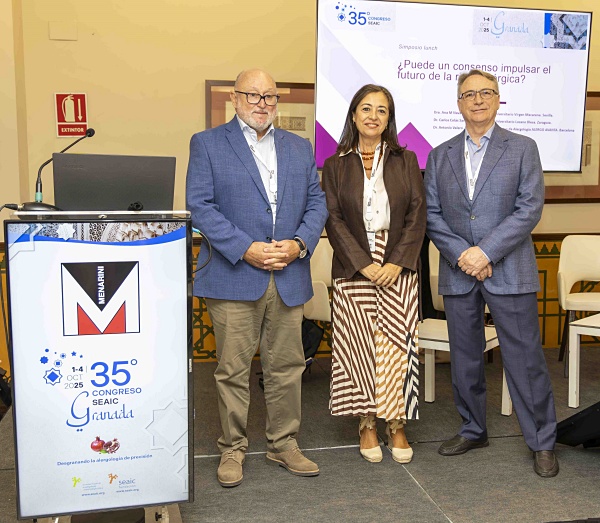 (de izq. a dcha): Dr. Antonio Valero, alergólogo y director médico del Centro de Alergología ALERGO AVANTA (Barcelona); Dra. Ana Navarro, alergóloga y miembro del Hospital Universitario Virgen Macarena (Sevilla), y Dr. Carlos Colás, alergólogo del Hospital Clínico de Zaragoza